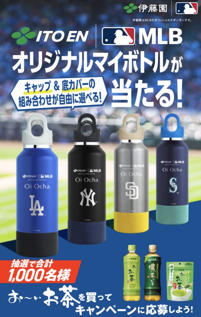 画像出展:伊藤園 お〜いお茶 伊藤園×MLB™︎オリジナルマイボトルが当たる!プレゼントキャンペーン
