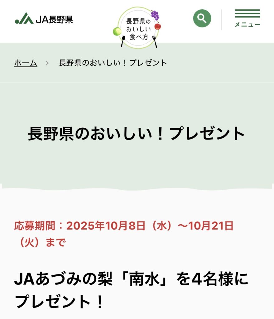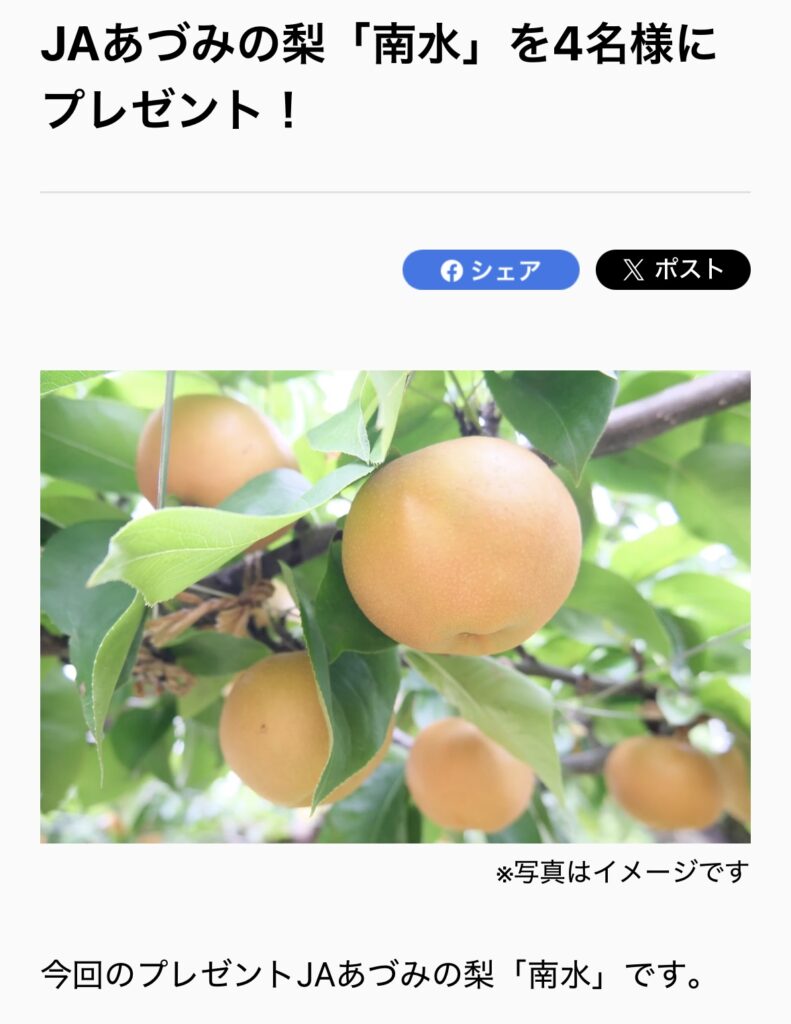 JAあづみの梨「南水」プレゼントキャンペーン