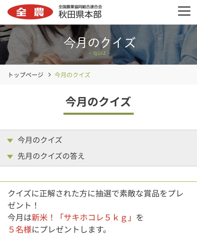 秋田県産の新米が当たります!