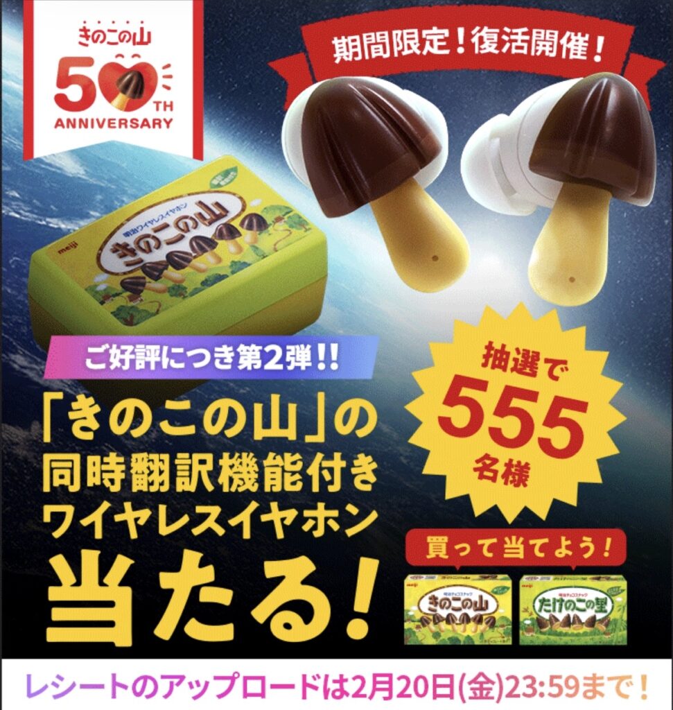 「きのこの山」の同時翻訳機能付き