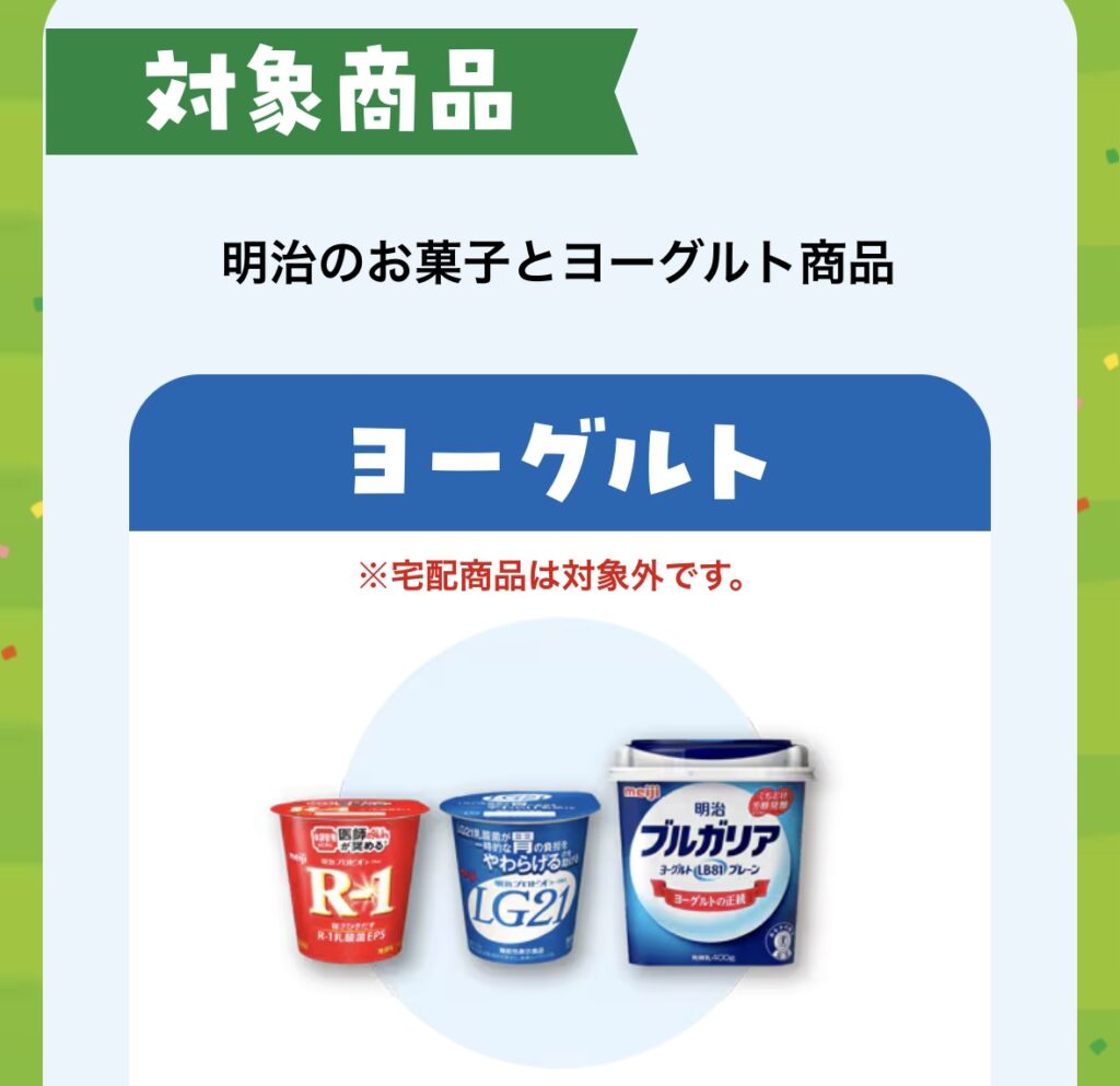 ①明治のお菓子とヨーグルトを合計税込1,000円以上購入