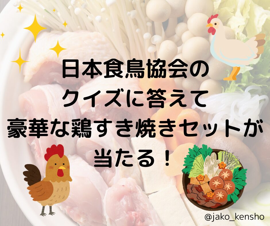日本食鳥協会のクイズに答えて豪華な鶏すき焼きセットが当たる!