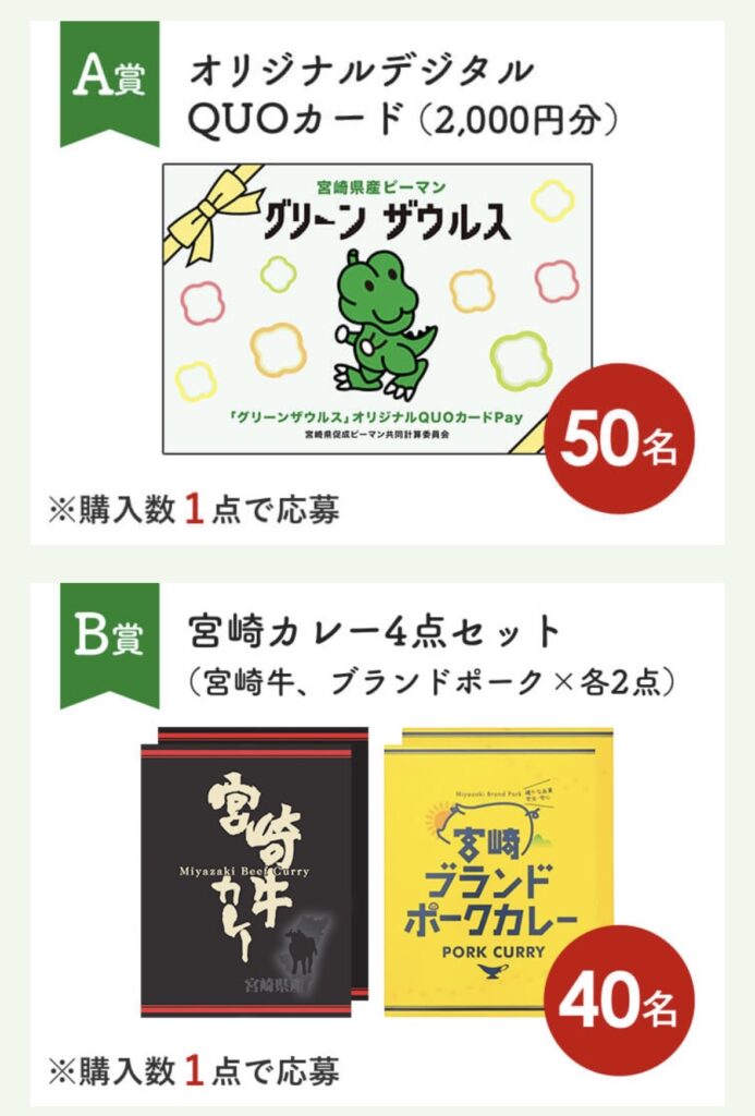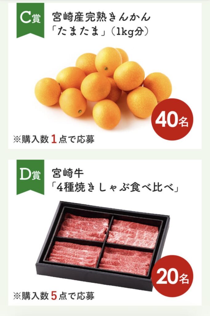 1点購入からでも豪華な賞品が当たるのは魅力的ですね!