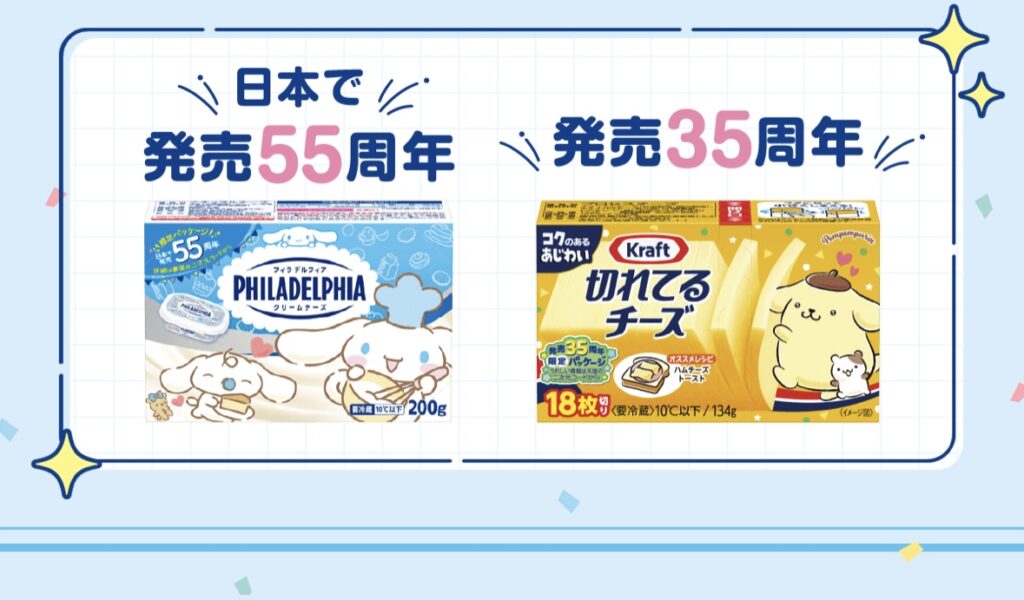 画像出展:森永乳業 フィラデルフィア クリームチーズ Kraft 切れてるチーズ×サンリオ アニバーサリーキャンペーン