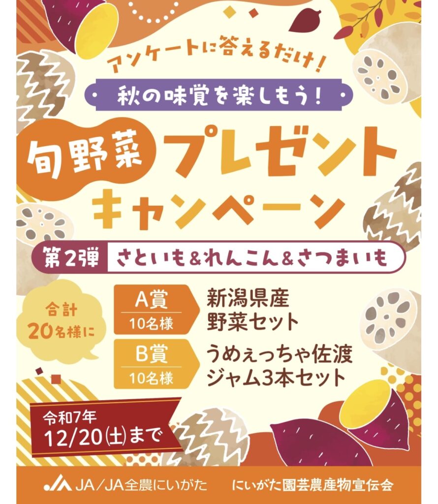 画像出展:JA全農にいがた 秋の味覚を楽しもう!旬野菜プレゼントキャンペーン