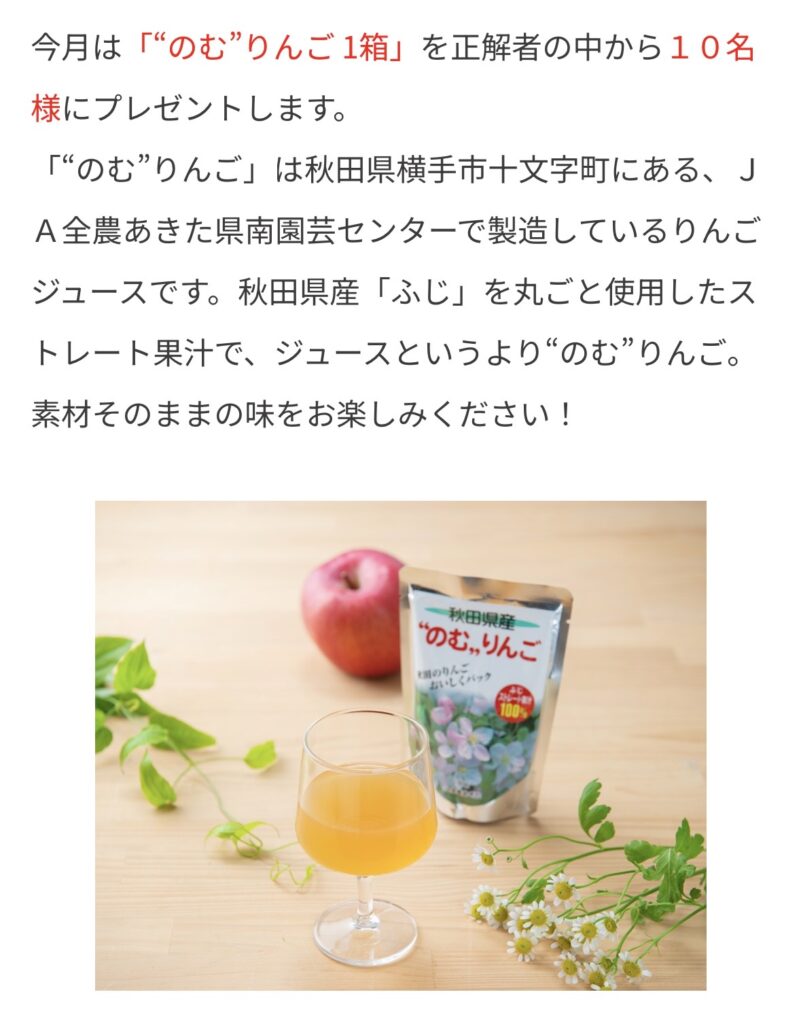 ●JA全農あきた 今月のプレゼント “のむ”りんご1箱