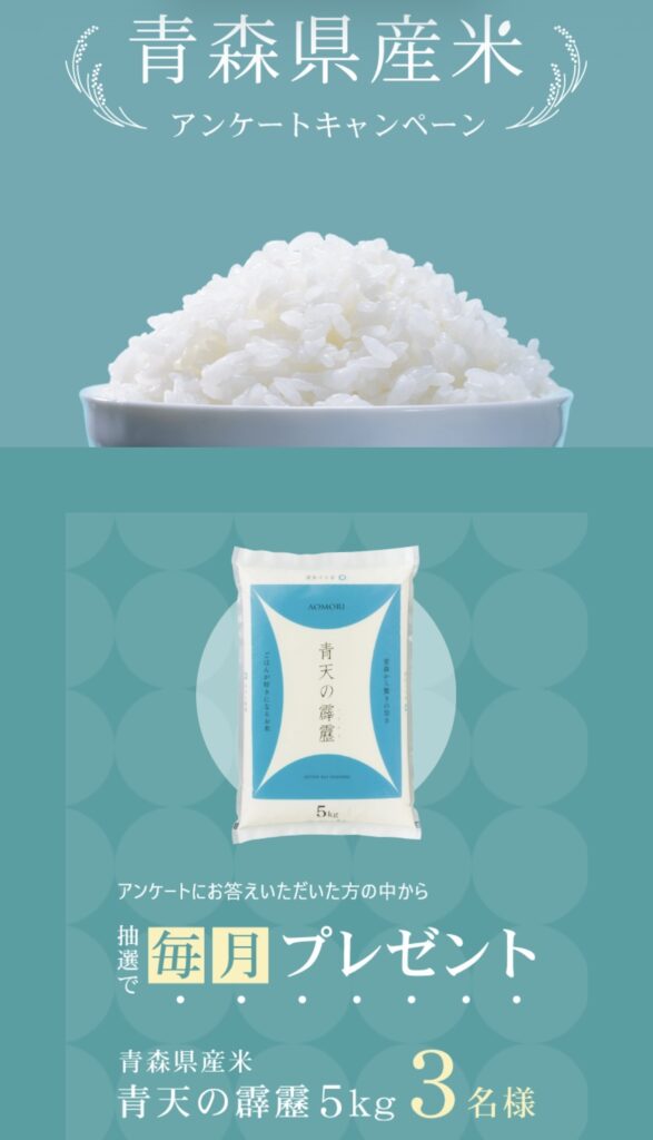 青森県産のお米5kgが当たるのは良いですね!!!