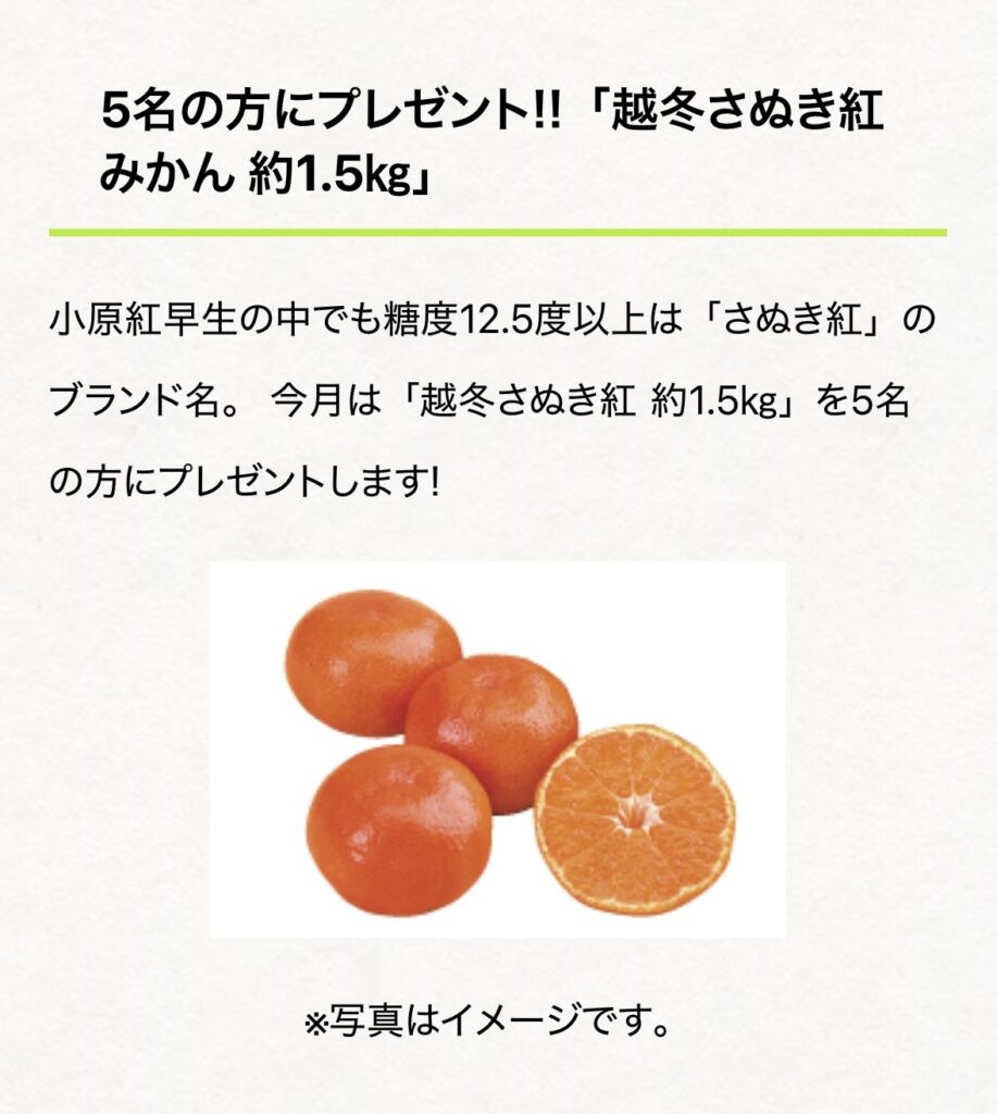 画像出展:JA香川 越冬さぬき紅みかん約1.5kgプレゼントキャンペーン