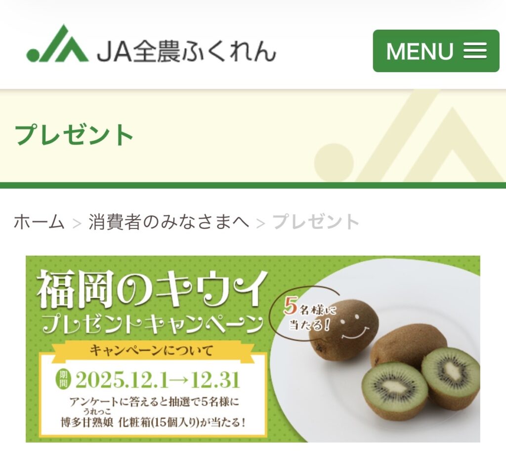 ●JA全農ふくれん 福岡のキウイプレゼントキャンペーン 博多甘熟娘