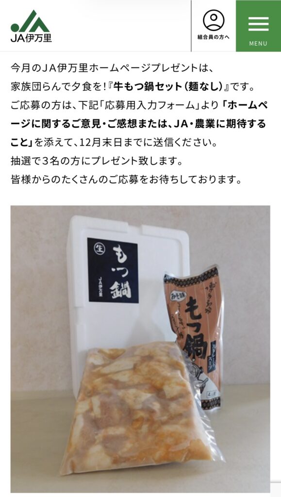 もつ鍋セットが当たるのはすごいですね!!!