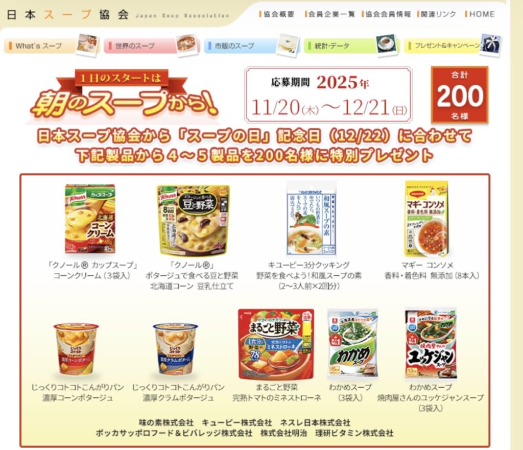 ●日本スープ協会 「スープの日」記念日 スーププレゼントキャンペーン