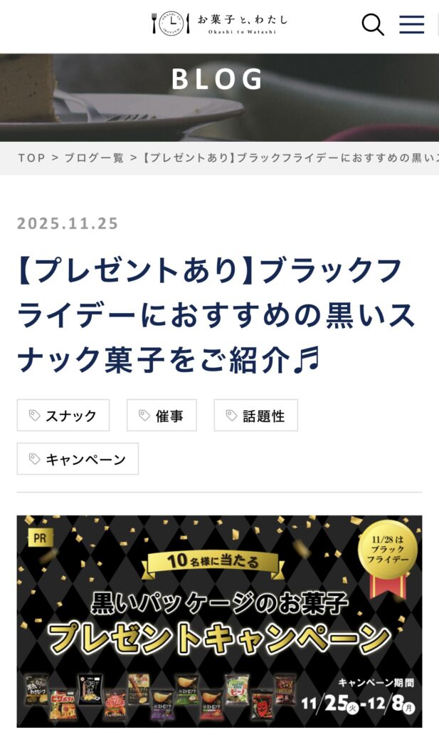 画像出展:お菓子と、わたし 黒いスナック詰め合わせプレゼントキャンペーン