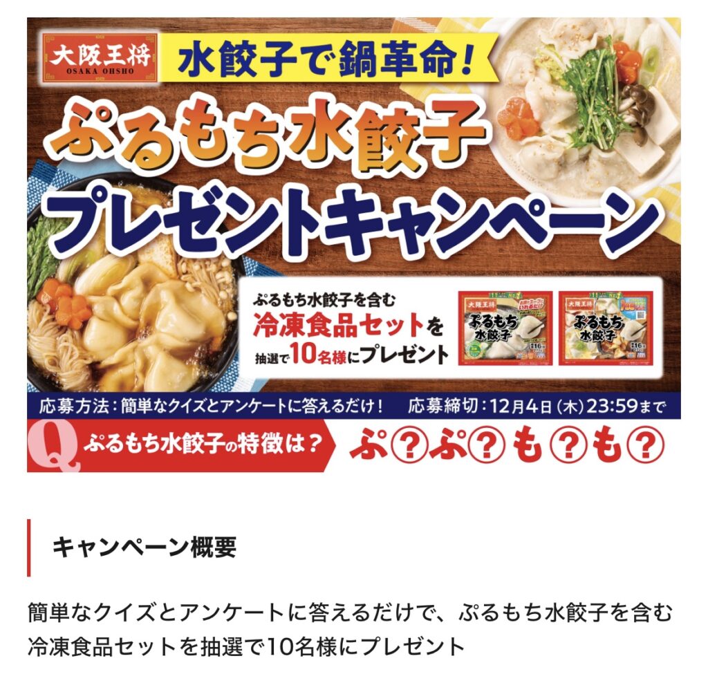 ●大阪王将 ぷるもち水餃子プレゼントキャンペーン