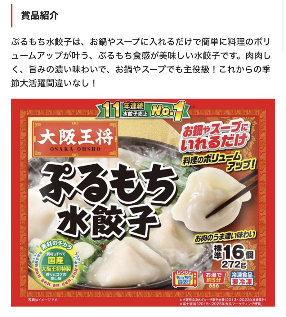 画像出展:大阪王将 ぷるもち水餃子プレゼントキャンペーン